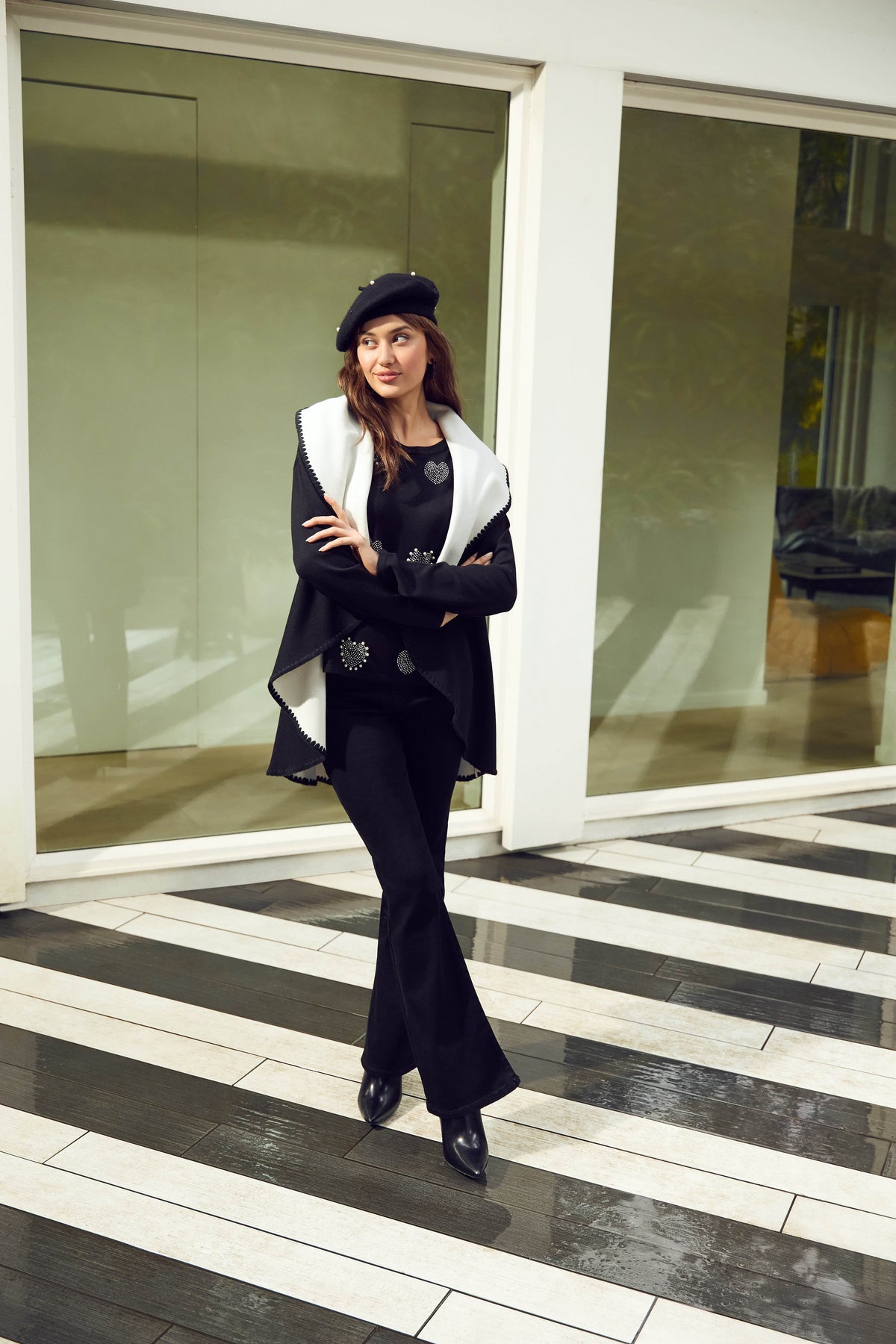 Discover effortless style with the Frank Lyman Casual Heart Pullover. Its relaxed fit and hip-length design make it ideal for everyday wear or special moments. Featuring a classic crew neck and long straight sleeves, this pullover is elevated by sparkling jewel accents forming a charming heart motif. A perfect choice for those who value subtle sophistication, it’s a must-have addition to your wardrobe.