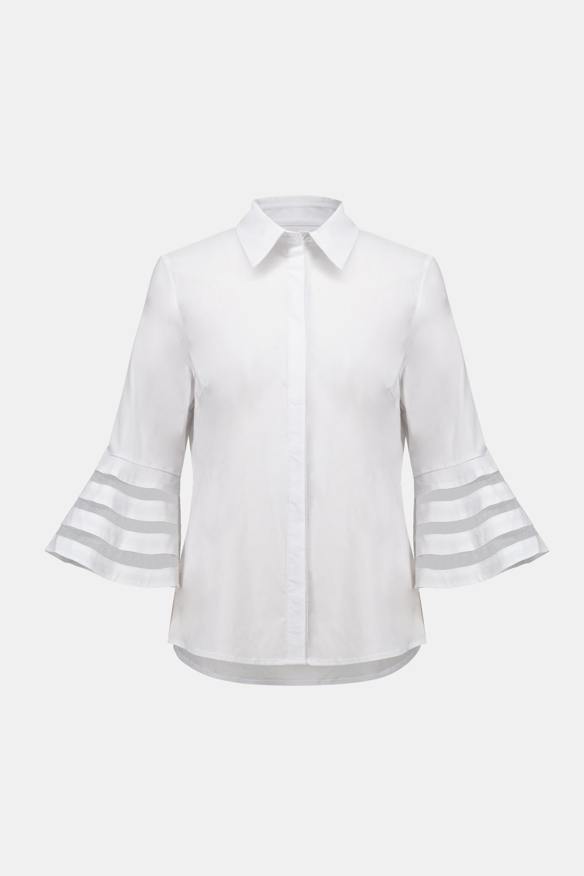 Stretch Poplin Straight Blouse with Organza Bell Sleeves