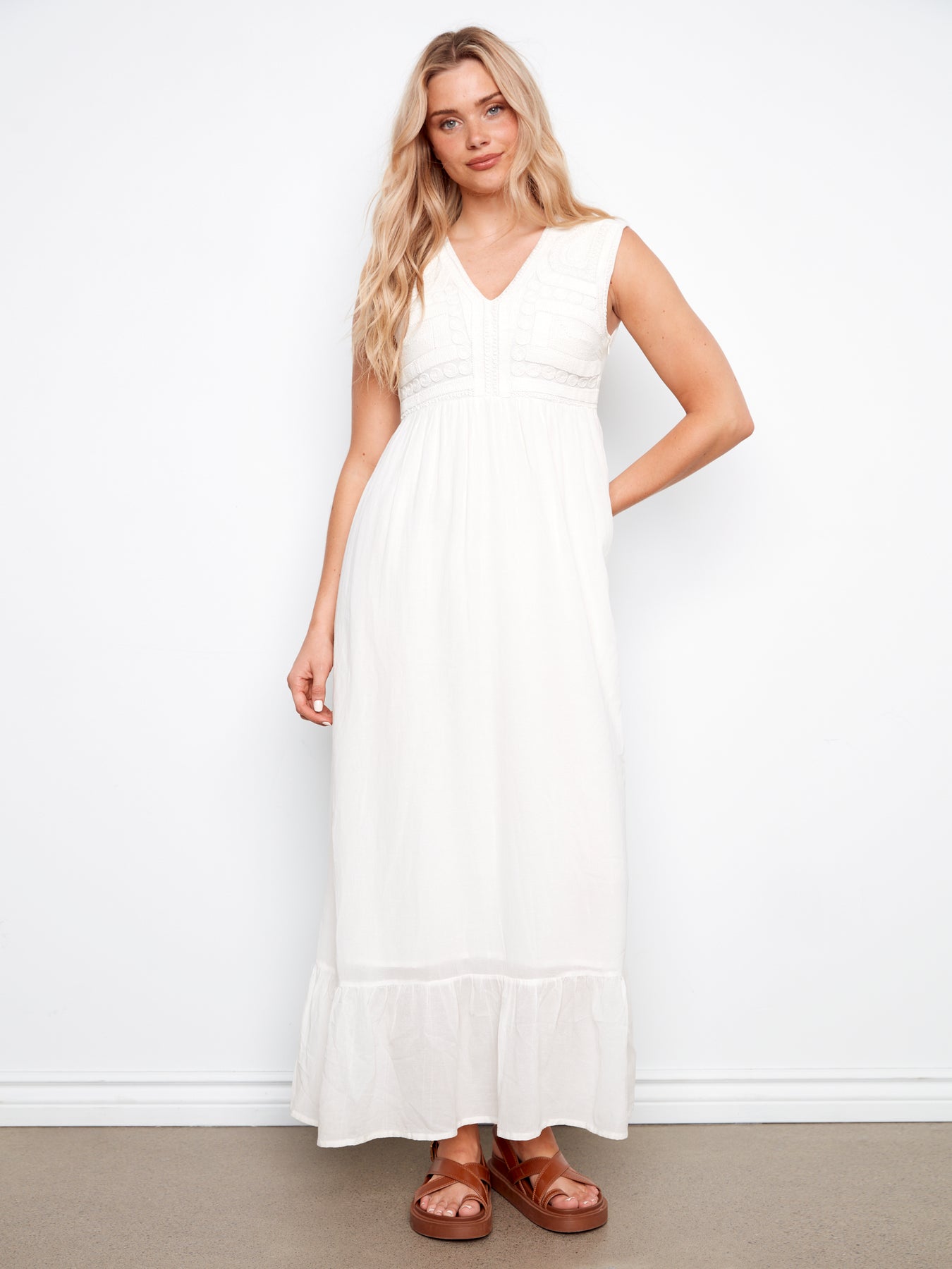 Embroidered Cotton Blend Maxi Dress Charlie B