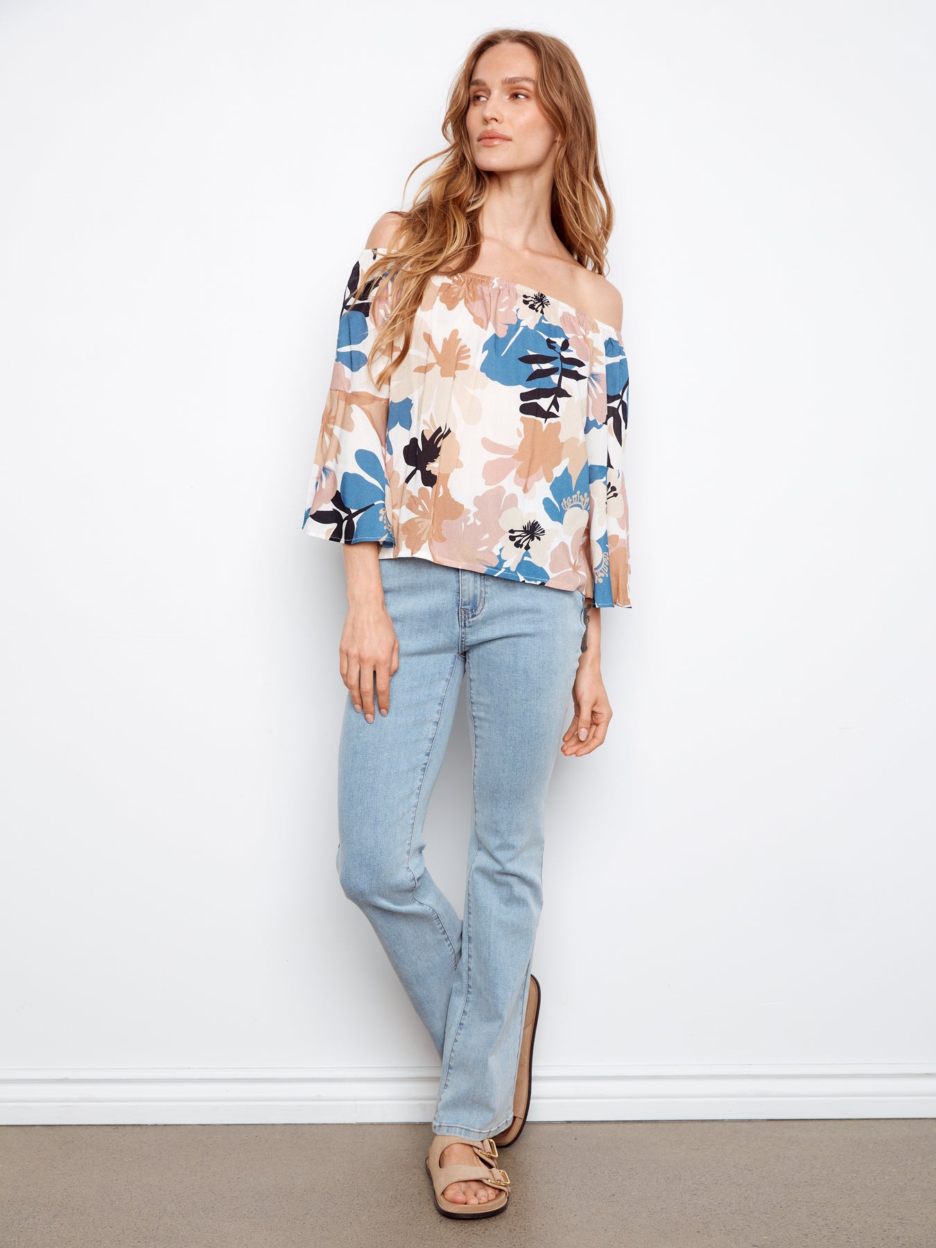 Printed 3/4 Sleeve Off-Shoulder Blouse Charlie B