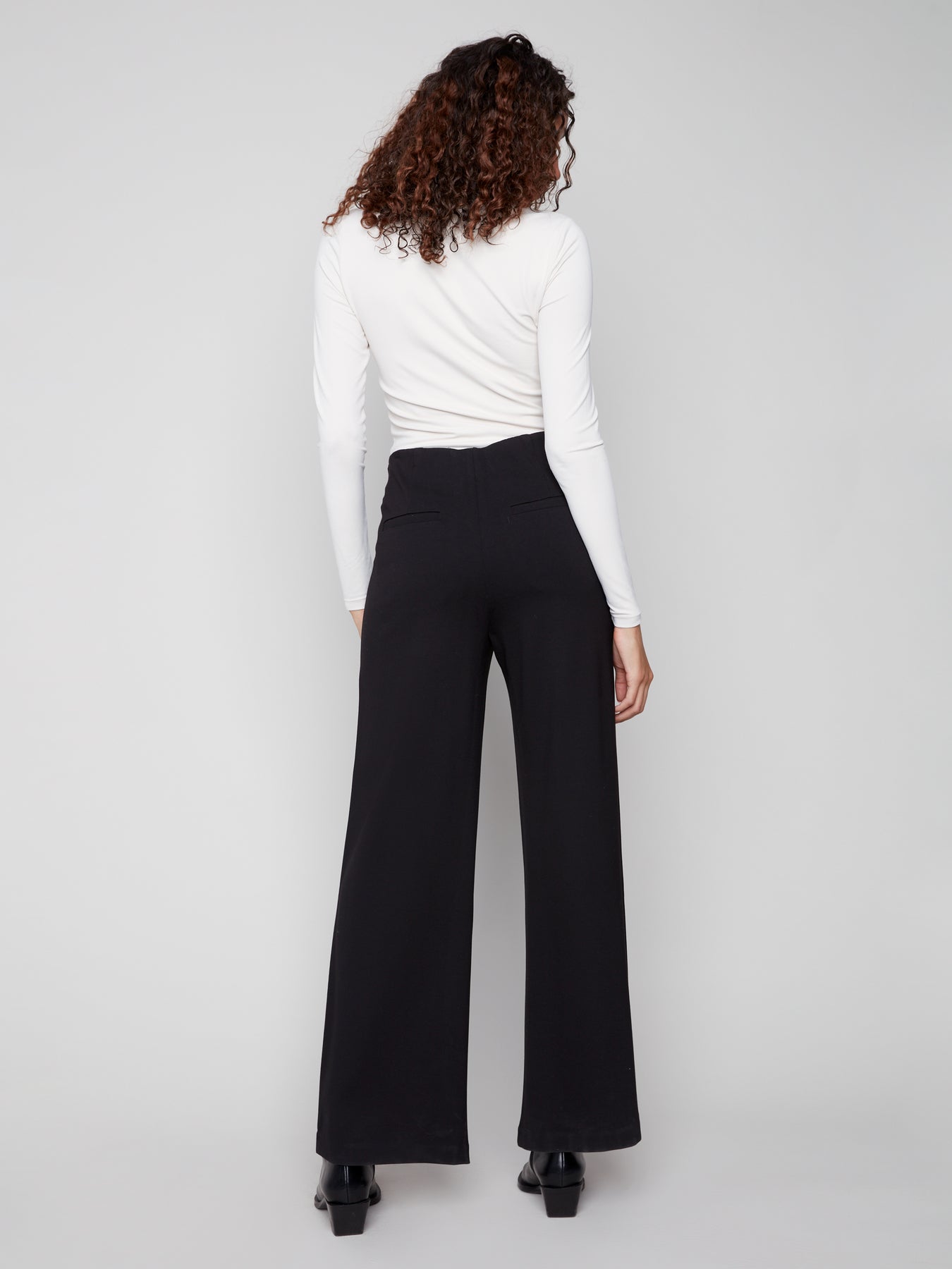 Designed for effortless style and comfort, these Pull-On Ponte Wide Leg Pants feature a smooth, stretchy ponte fabric that moves with you. The inside elastic waistband ensures a secure yet flexible fit, eliminating any discomfort or pinching. Their wide leg silhouette offers a flattering shape while allowing freedom of movement, making them perfect for both professional and casual settings. Elevate your wardrobe with pants that combine ease, elegance, and all-day wearability, ideal for those who value comfort without sacrificing style.