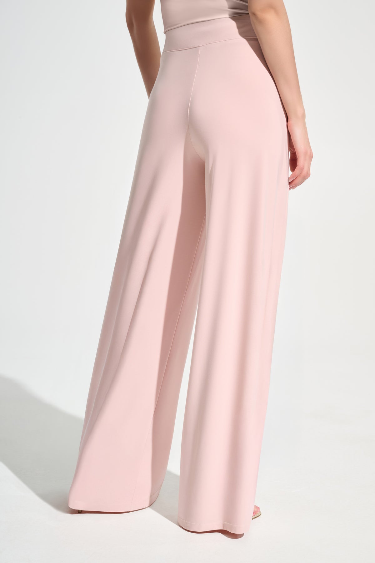 Clean and elegant, these wide leg pants offer a refined look with fluid, lustrous fabric and a smooth contour waistband. Designed to drape beautifully, they create a flattering silhouette while remaining effortlessly versatile. Part of the Signature Collection.