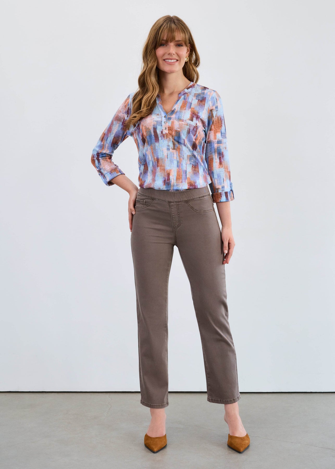 Experience effortless style and comfort with the Pull-On Straight Ankle pants. Designed for easy wear, these pants feature a pull-on waistband that ensures a perfect fit without the hassle of buttons or zippers. The straight ankle cut offers a sleek, modern silhouette that pairs well with both casual and dressy looks. Crafted to provide all-day comfort, these pants are ideal for busy days when you want to look polished without sacrificing ease. Elevate your wardrobe with this versatile piece that combines practicality and timeless style.