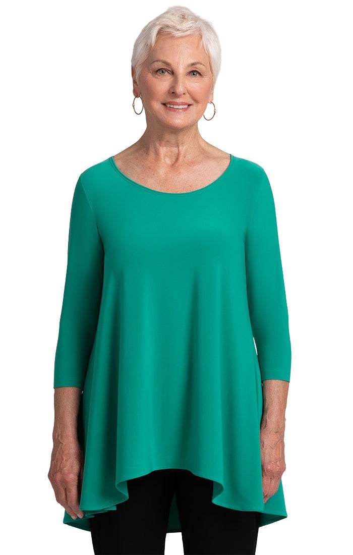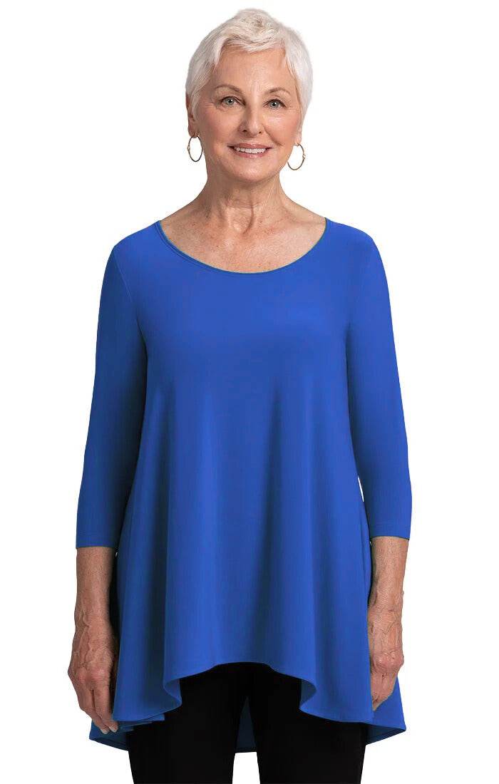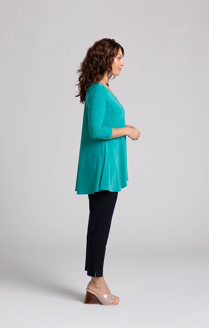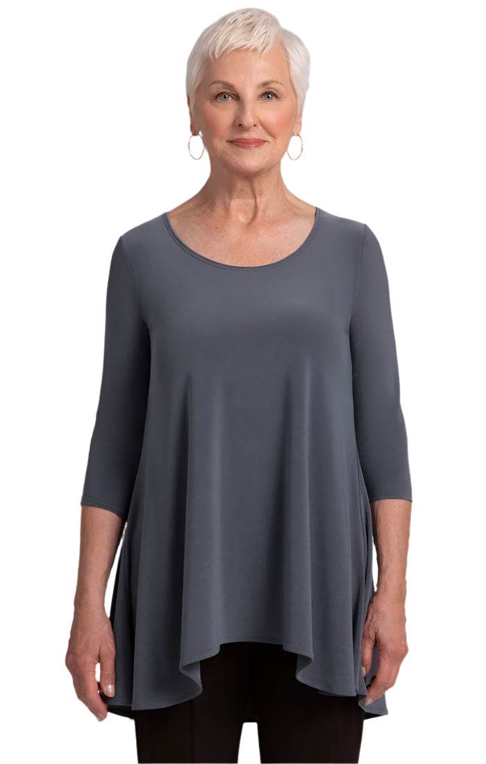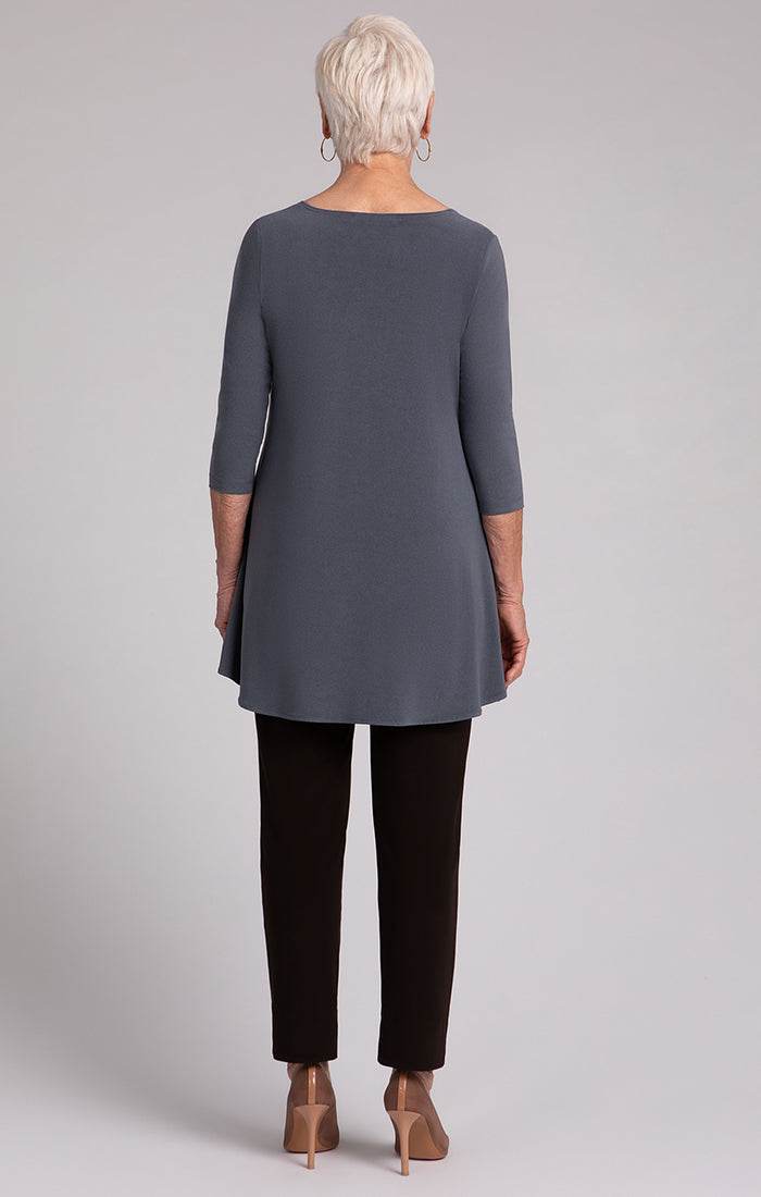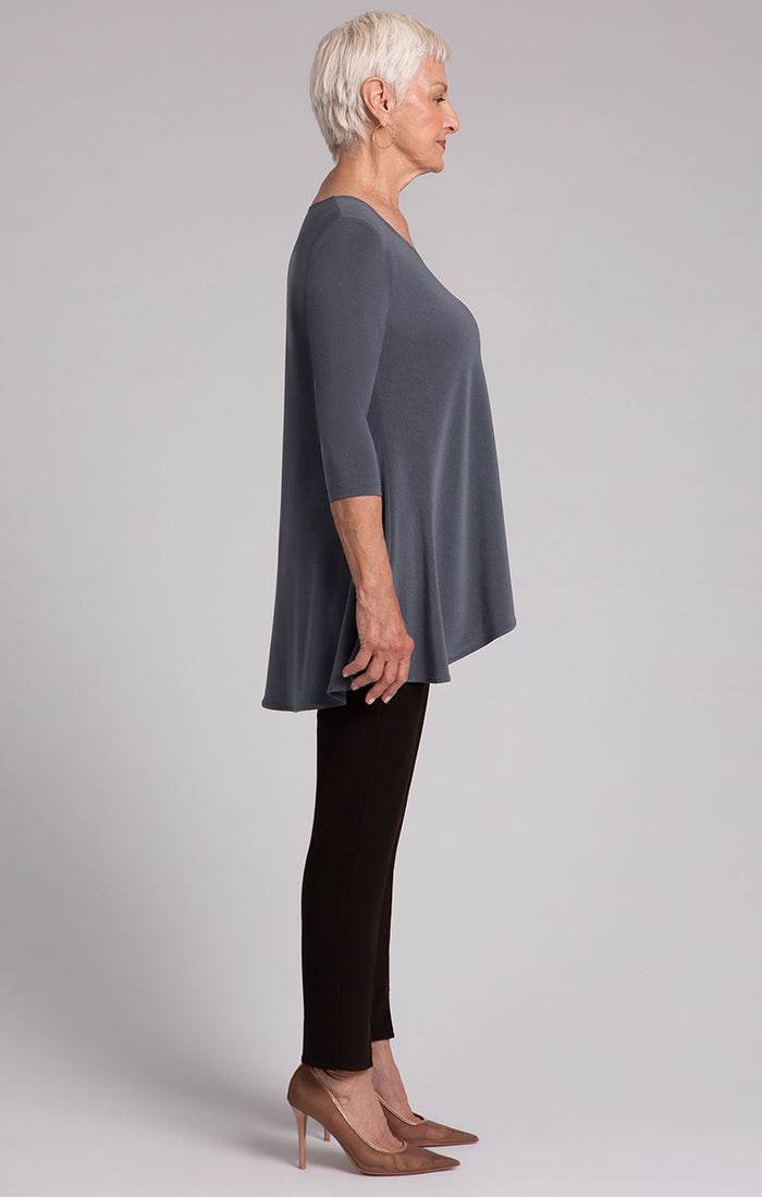 Introducing the Nu True T - an upgraded iteration for admirers of our traditional True T. Featuring extended length and a wider sweep, this enhancement takes inspiration from our top-selling Go To Classic T. Perfect for individuals in search of greater coverage, the Nu True T redefines comfort and sophistication with its ideal fusion of familiarity and contemporary elegance. Complete with a crew neckline and high-low hem, and boasting 3/4 length sleeves, this relaxed fit t-shirt exudes an aura of luxury and exclusivity.
