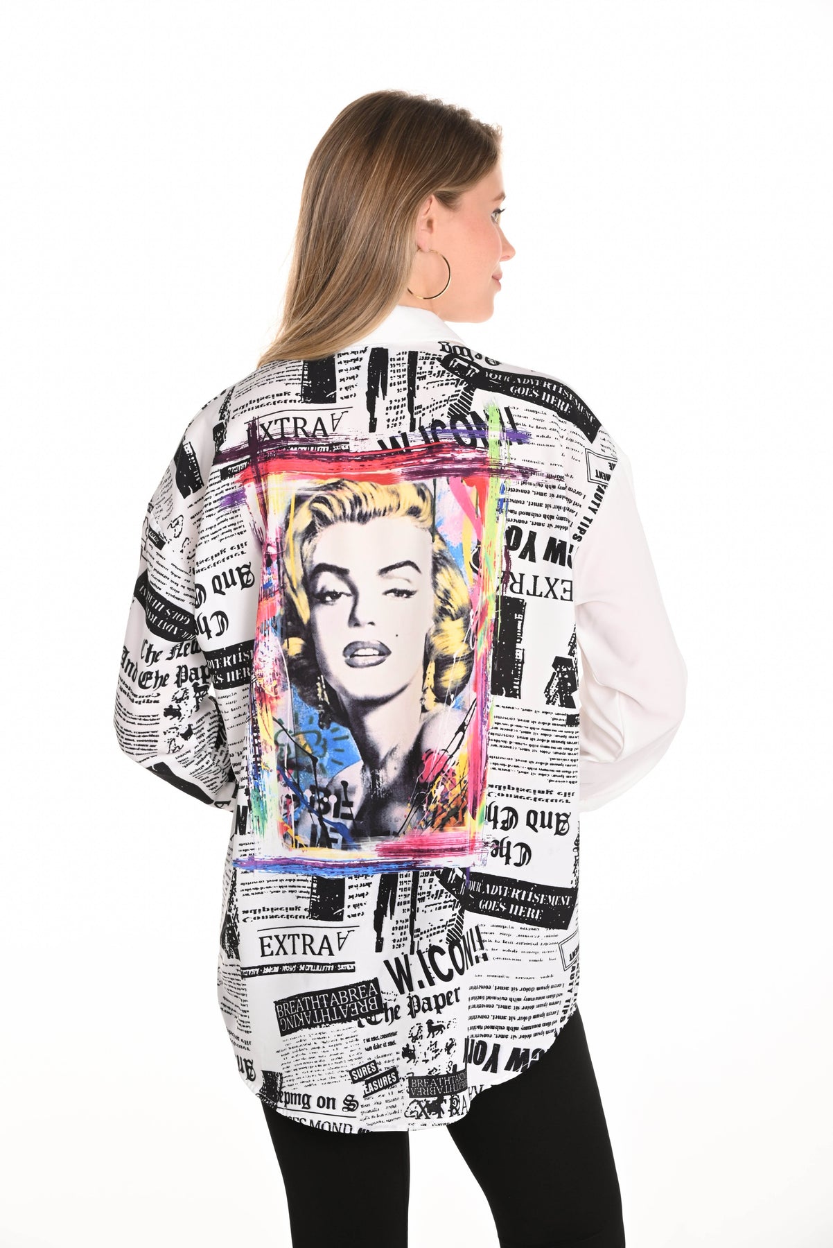Introducing the fashionable and multipurpose Frank Lyman shirt. Created with a modern, urban, and simplistic design, this mid-length, standard size garment showcases a button closure and a refined collar. Ideal for everyday wear, formal settings, or special events, the extended, linear sleeves and striking graphic text-print bring a distinctive flair to your collection. Embrace both comfort and style with this essential addition.