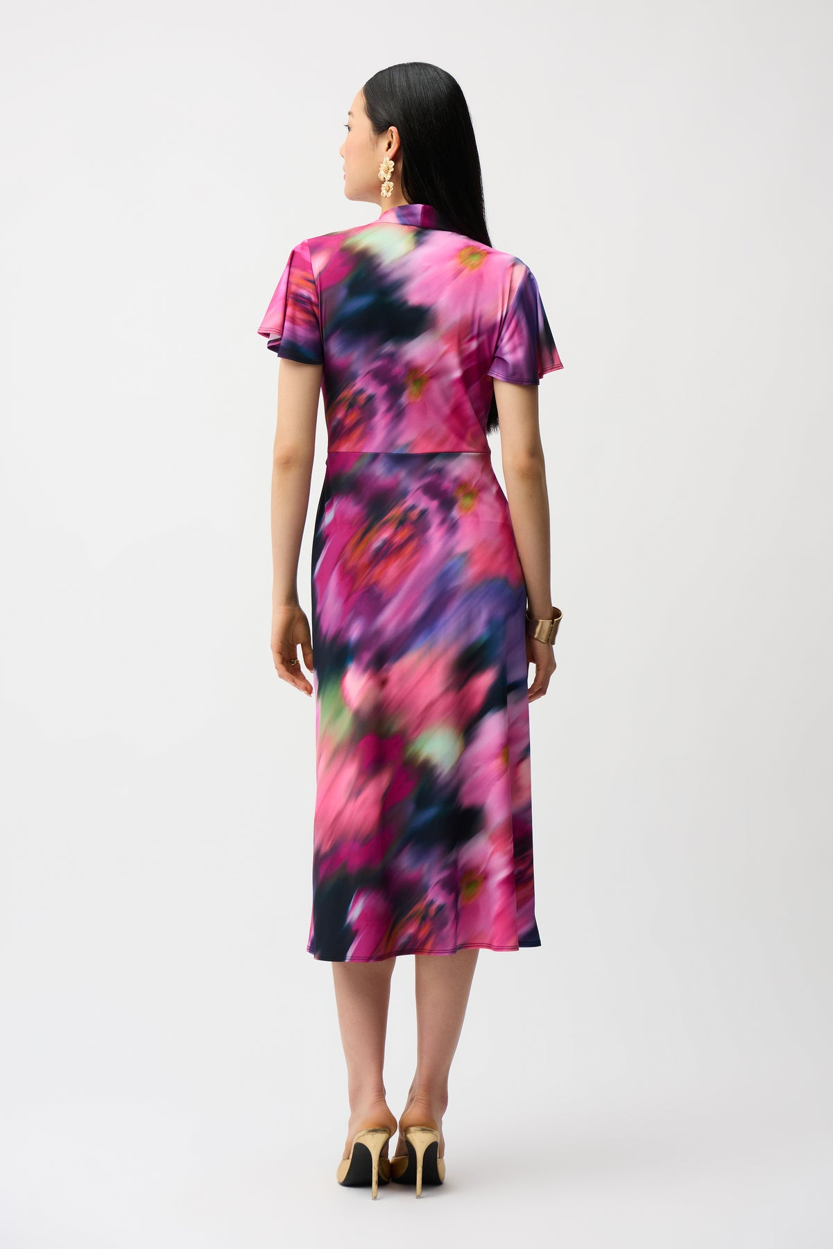 Silky Knit Floral Print High-Low Wrap Dress 261060 Joseph Ribkoff