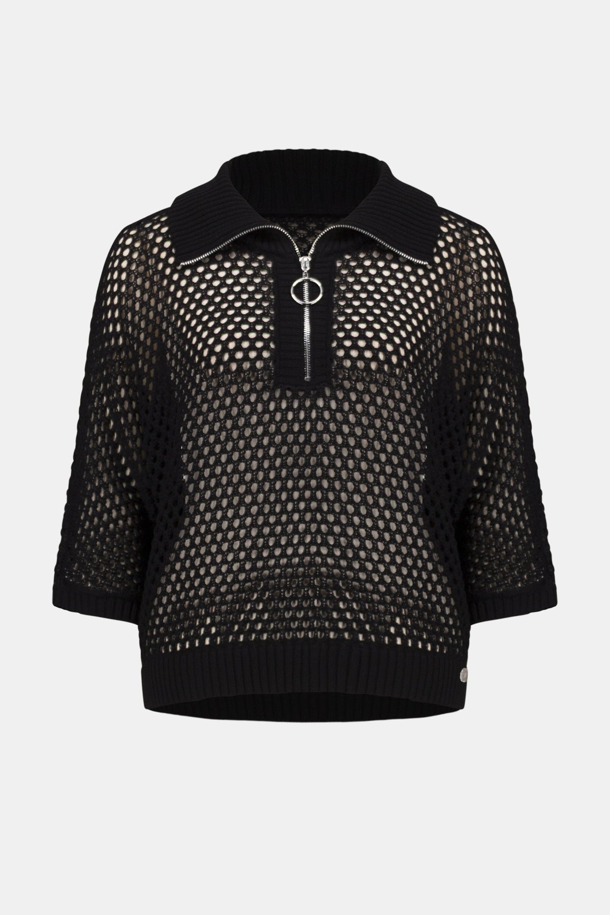 Vicscose Blend Boxy Sweater Knit With Zipped Neckline Joseph Ribkoff