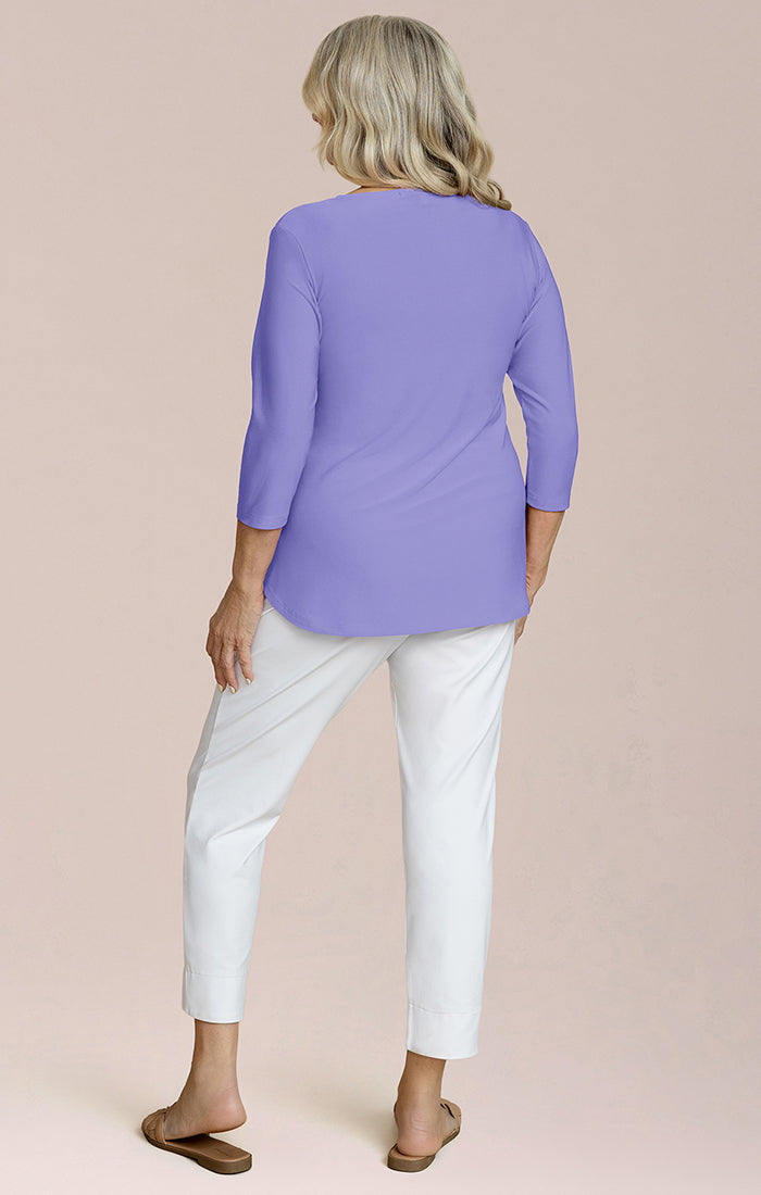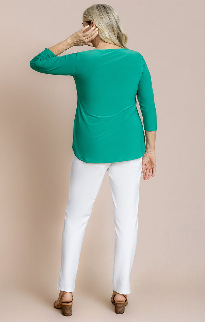 Love the colour and glad the neckline was right for me, I really need vee neck, I don't know why they don't make more vee neck tops for bustier people, it's more flattering.\nLove that there's no postage charge, that's why I went with you. Thank you, will be in touch later in the year for fall winter.