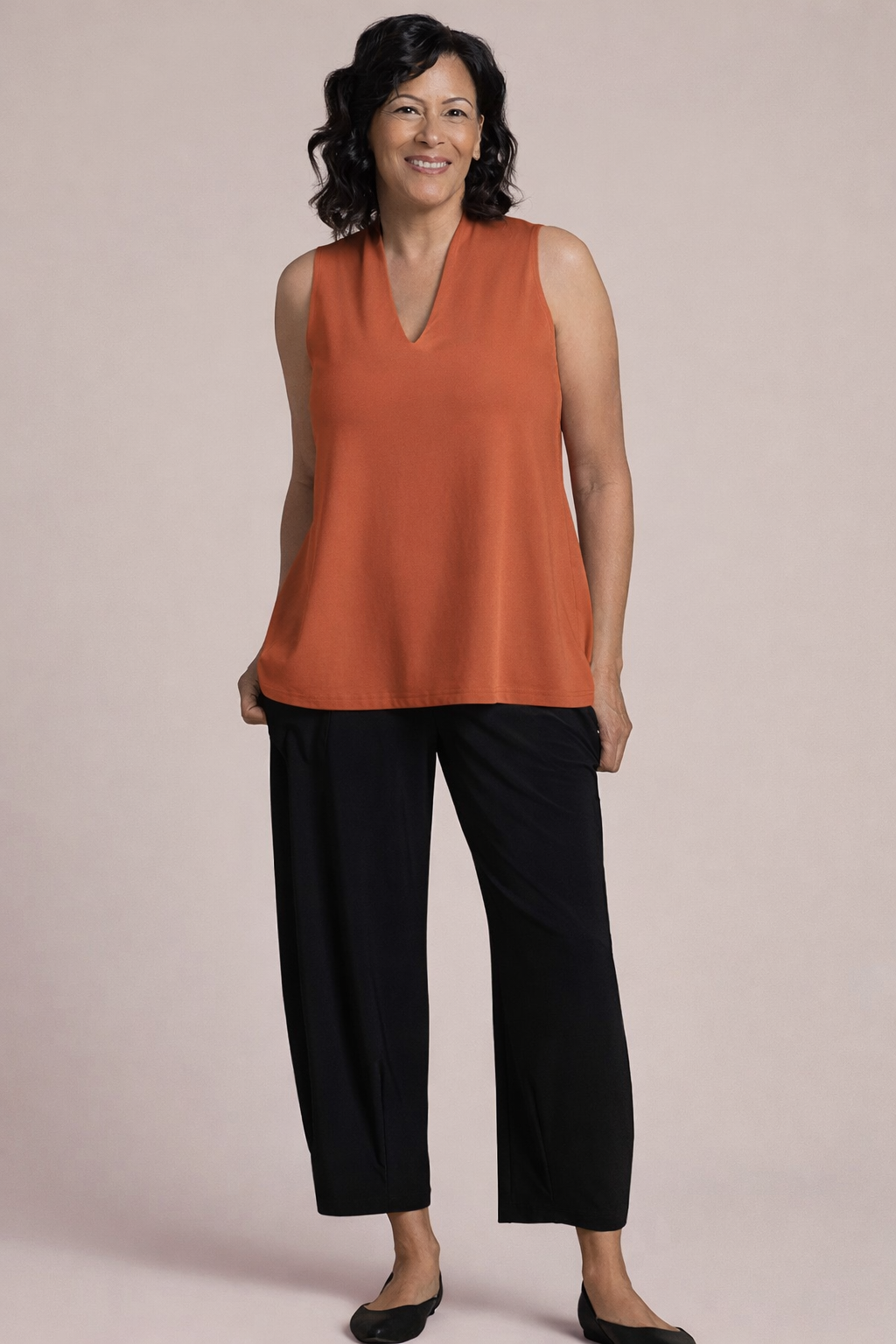 Sublimez votre style en toute simplicité avec notre débardeur trapèze à décolleté plongeant. Sa coupe cintrée et évasée élégante et son décolleté en V plongeant lui confèrent une allure à la fois tendance et pratique. Polyvalent, ce débardeur vous accompagne en toutes occasions, du look décontracté au style chic. Décolleté en V plongeant. Débardeur sans manches à double épaisseur sur le devant. Coupe trapèze.