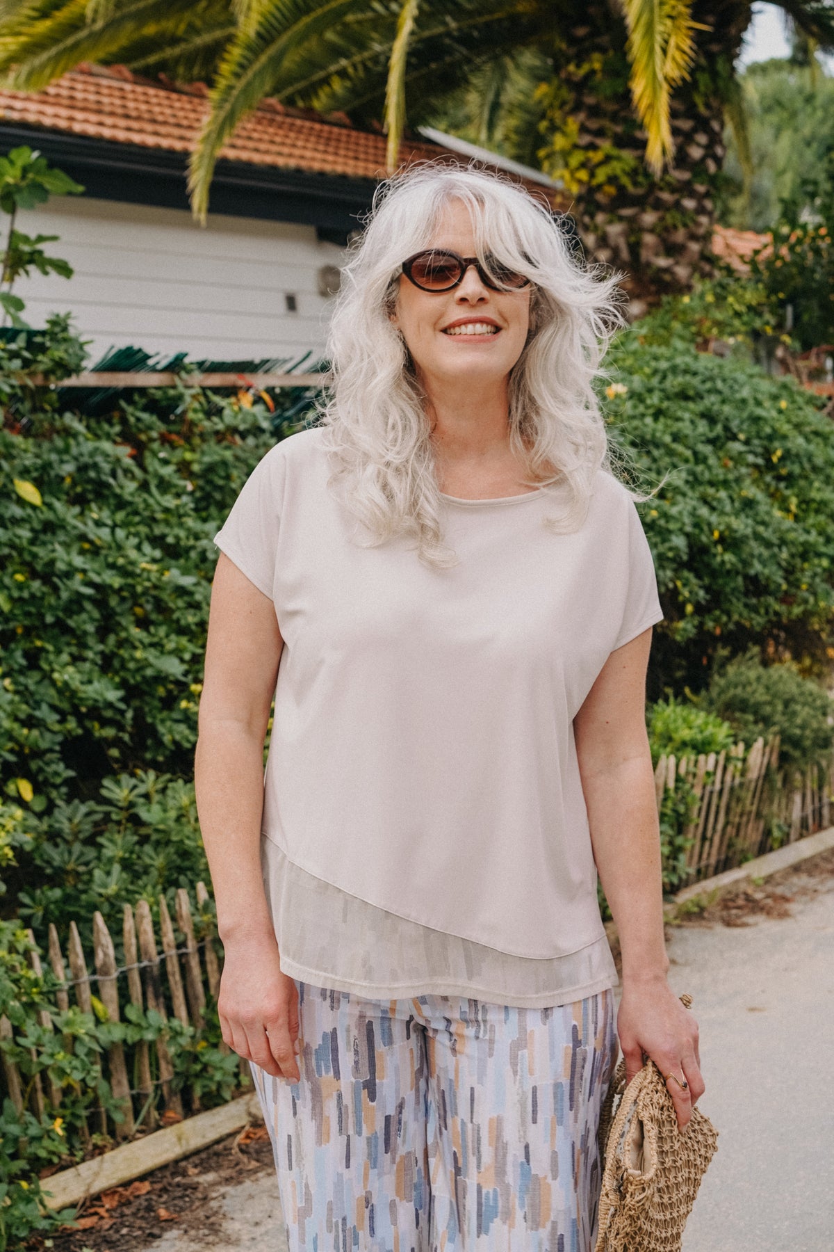 Le top Pop Collage apporte une touche de sophistication naturelle à votre garde-robe. Confectionné dans un tissu texturé et léger, il présente des coutures nettes qui créent un design à la fois saisissant et minimaliste. Confortable, polyvalent et intemporel, ce top vous accompagne avec élégance du bureau au week-end.