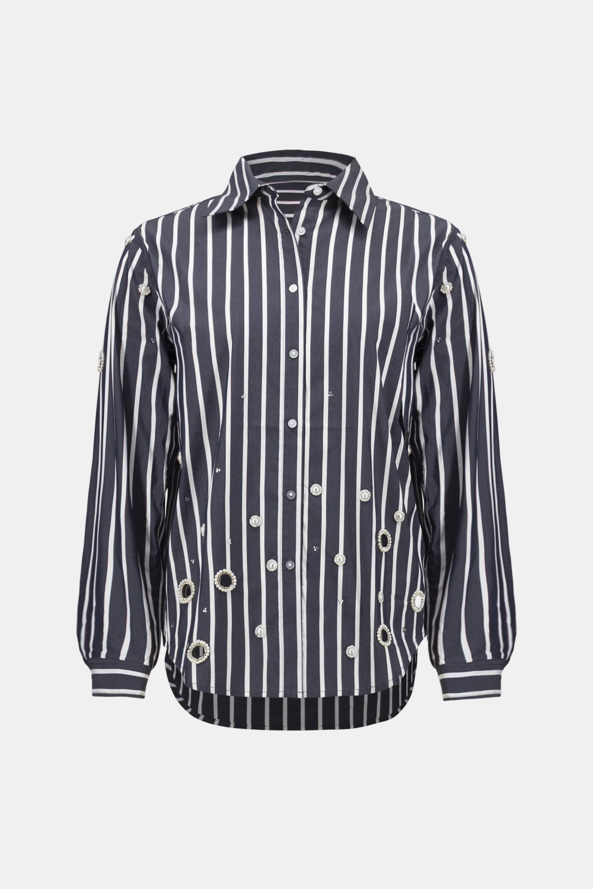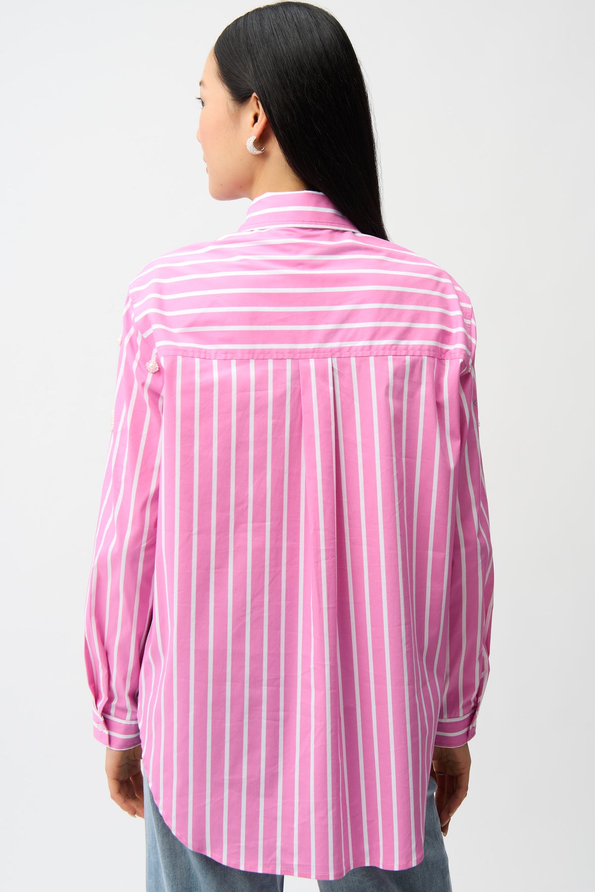 Stretch Cotton Stripe Print Boxy Blouse With Rhinestones Joseph Ribkoff