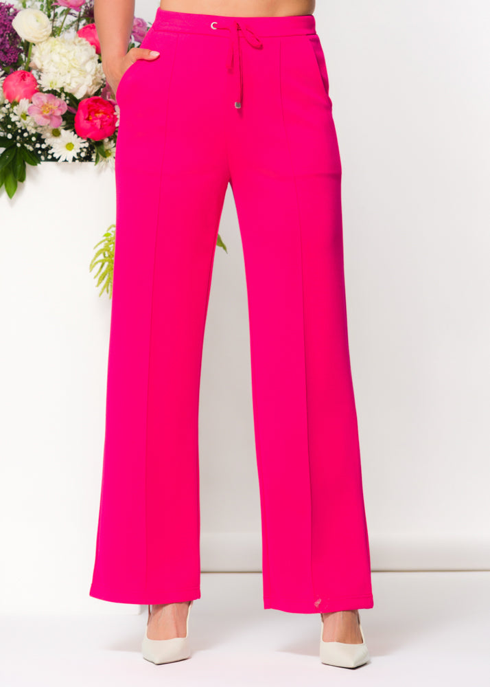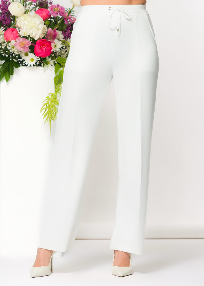 Comfortable and polished, these pull-on pants feature a fluid wide-leg silhouette with a flattering elastic drawstring waistband for the perfect fit. Side pockets add everyday ease, making them an ideal choice for travel, casual chic looks, or elevated lounge styling.