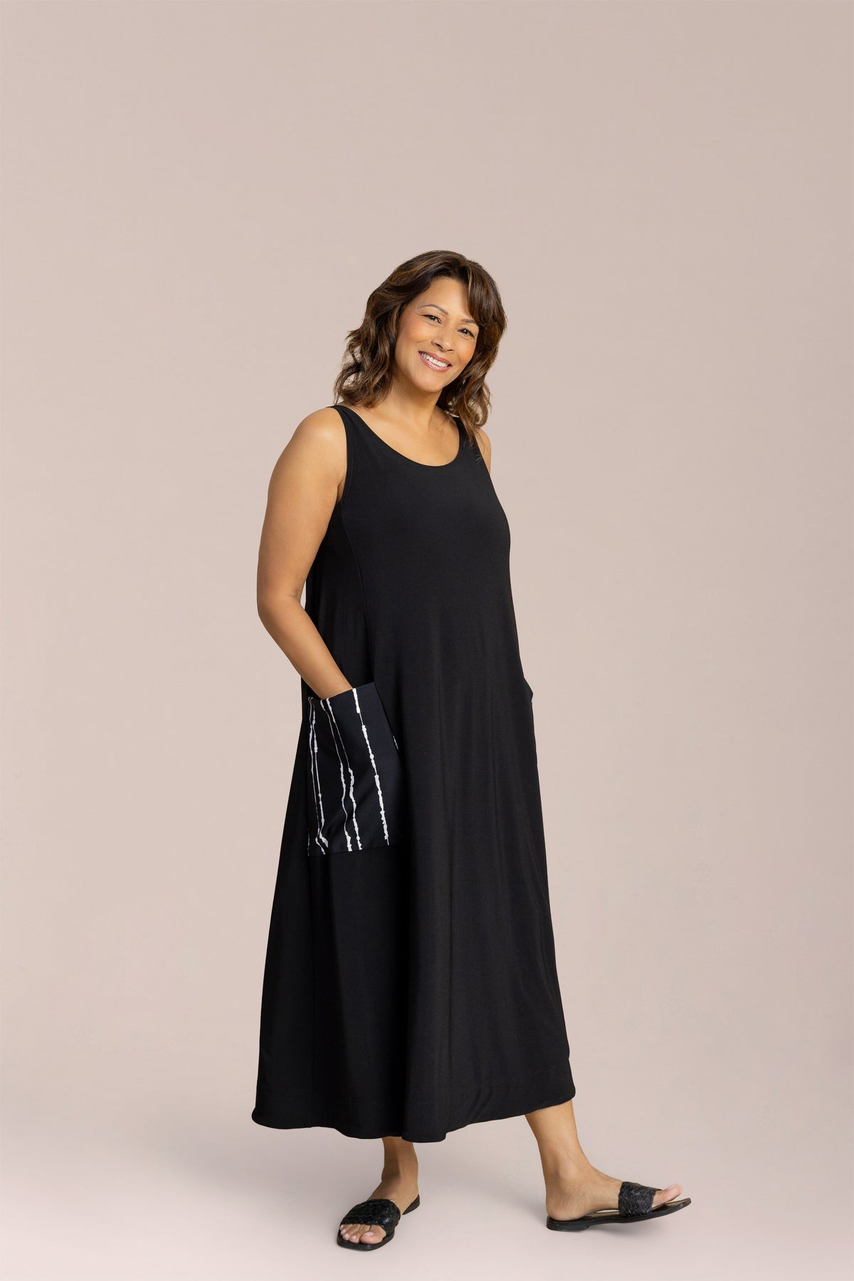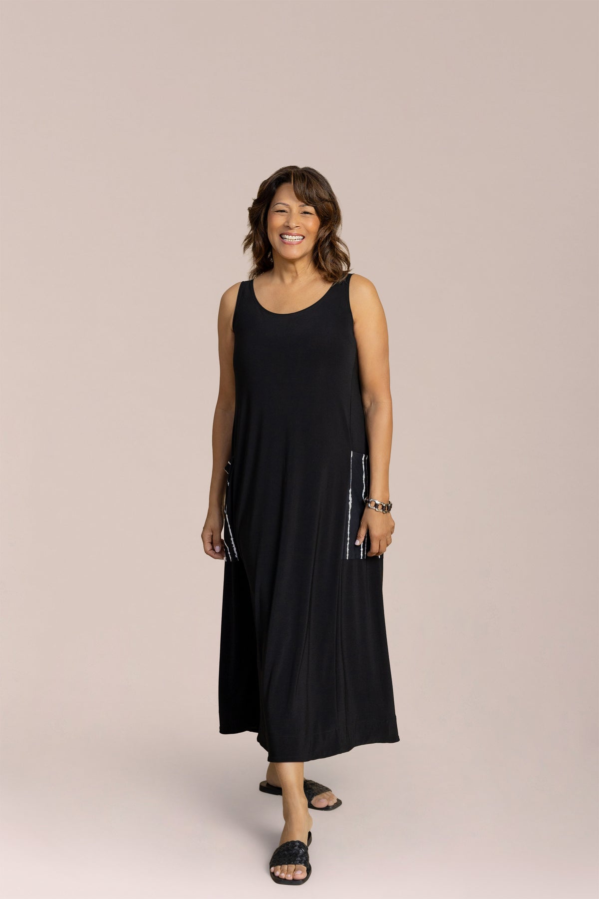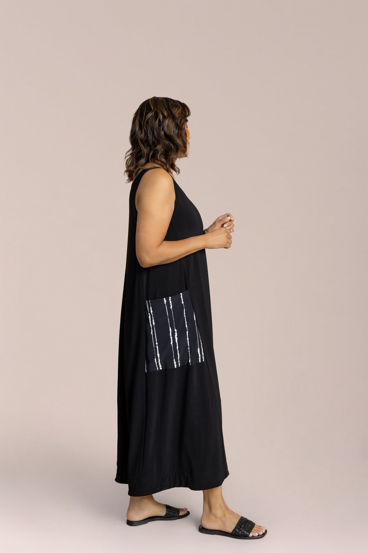 Effortless elegance meets everyday comfort in this sleeveless midi dress. The relaxed silhouette drapes beautifully while contrast pockets add functional style. Lightweight and breathable, it's your go-to piece for warm weather and casual occasions—pair with sandals for an instantly polished look.