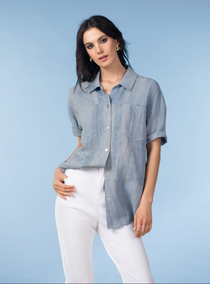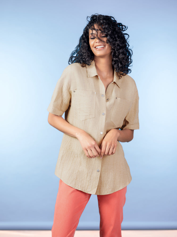 A relaxed button-front shirt that works for any occasion. With its breathable fabric and classic design, this versatile blouse transitions seamlessly from casual days to dressed-up moments. The short sleeves and timeless collar make it an essential piece you'll reach for again and again.