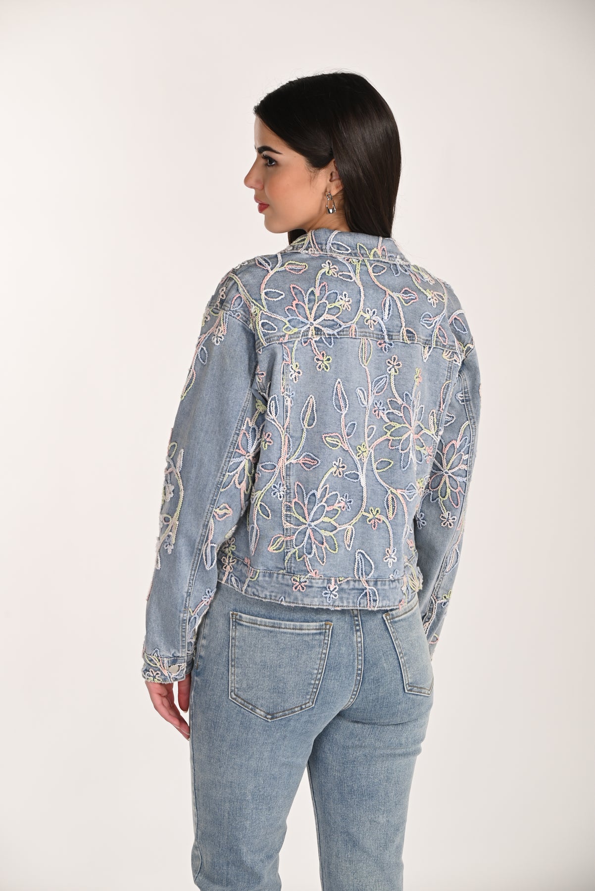 A classic denim jacket updated with allover floral embroidery for a soft, feminine touch. Designed with a button front and chest pockets, it keeps the timeless structure you love with added detail. Perfect for layering over tees, tanks, or dresses for an easy everyday look.