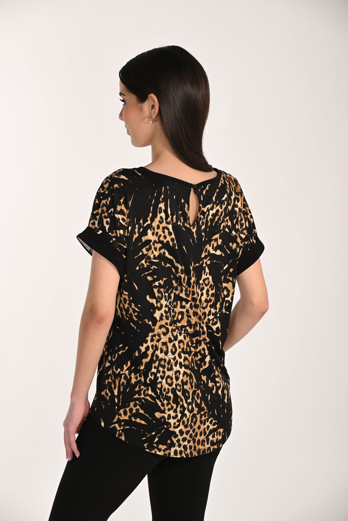 Leopard Roll-Cuff Top