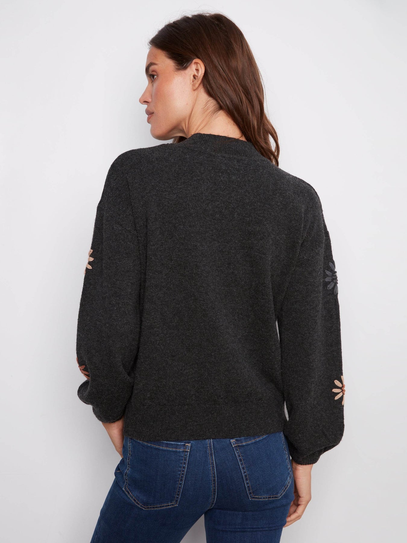 Mock Neck Sweater With Floral Embroidery - Dream Pants
