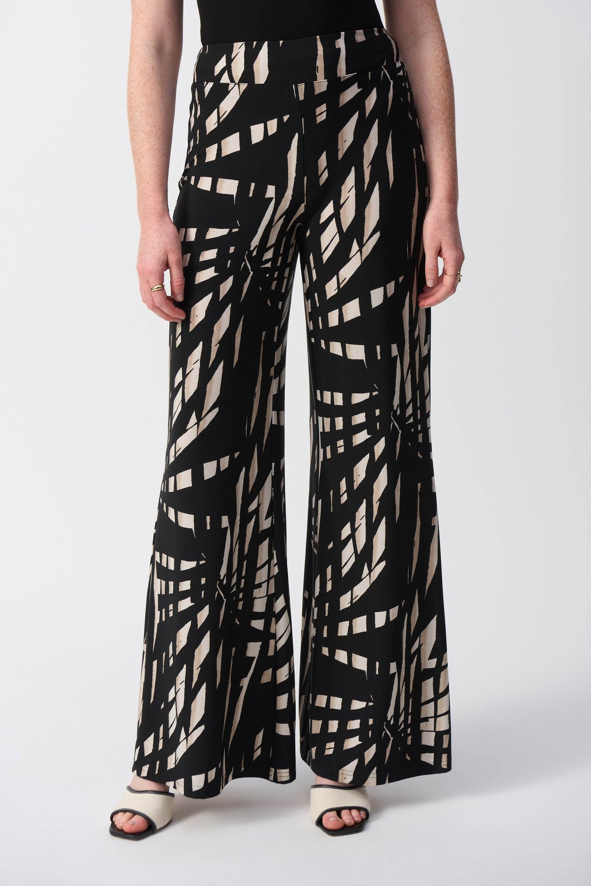Perfect for both exotic getaways and nearby adventures, these wide leg pants offer effortless style. Made from a luxurious silky knit, they feature a comfortable contour waistband and a vibrant tropical print that captures the spirit of travel and elegance.