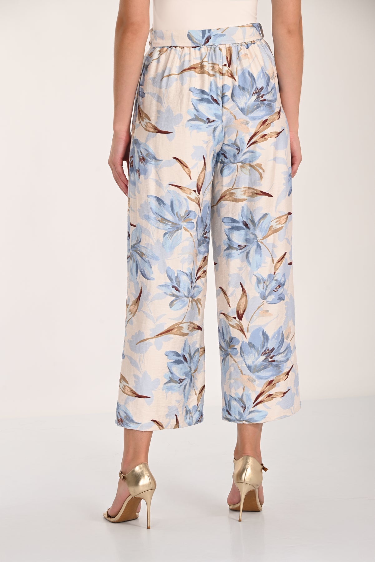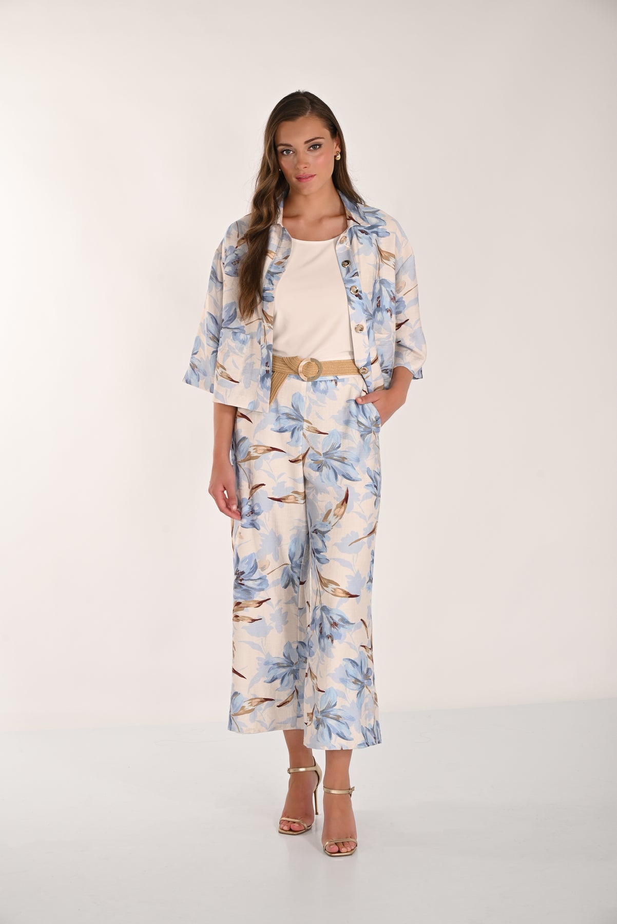 Light and effortlessly elegant, these wide-leg pants feature a soft floral print and a flowing silhouette. Designed with a flattering high-rise waist and a self-tie belt, they create a defined shape while maintaining comfort and ease. The cropped length adds a modern touch, while the airy fabric moves beautifully with every step. Perfect for warm days, they pair seamlessly with simple tops for a polished yet relaxed look.