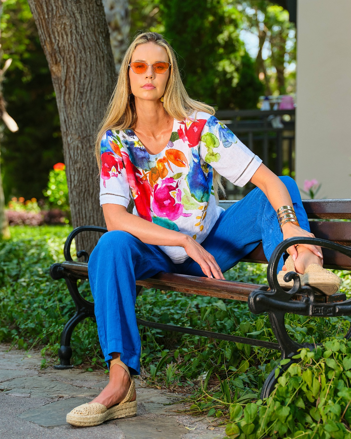 Effortless and artistic, this relaxed boxy top features a vibrant floral print that brings a fresh, painterly feel to everyday dressing. Designed with a soft round neckline, short sleeves, and an easy drape, it offers breathable comfort with a modern silhouette. Perfect for pairing with denim or lightweight pants, it’s a go-to piece for casual, polished style.