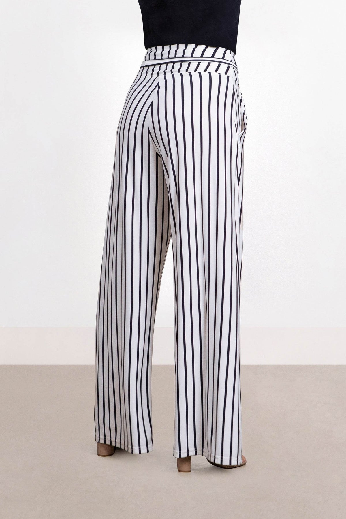 The wide leg, high rise yoke, and straight, roomy fit make this Stripe Wide Leg Trouser Style 27195B a guaranteed go-to.